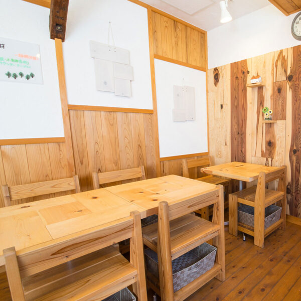 木づかい工房 温もりのある木のテーブル ゆるカフェ木楽楽は、木材を使用した温かみのある内装が特徴的です。天然の木目や色合いが、落ち着いた雰囲気を演出しています。メニューには、季節のフルーツを使ったスイーツや、コーヒー、紅茶、ジュースなどが豊富に揃っています。木の温もりを感じながら、美味しいドリンクとスイーツを楽しんでください。 PREV